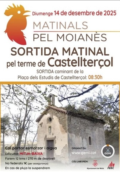 SORTIDA caminant de plaça dels Estudis de Castellterçol: 8:30 h.